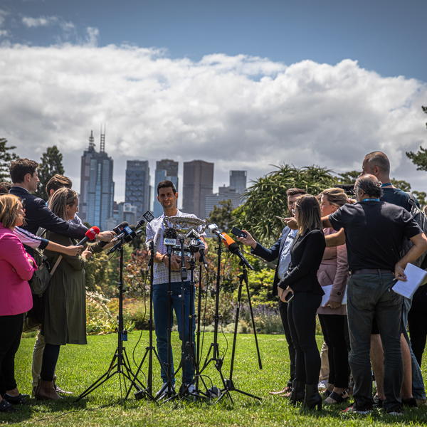 Novak Đoković je odradio šampionsko fotografisanje sa trofejom Australijan opena i prošetao sa trofejom kroz park Melburna, gde su posetioci i novinari imali prilike da se druže s njim.