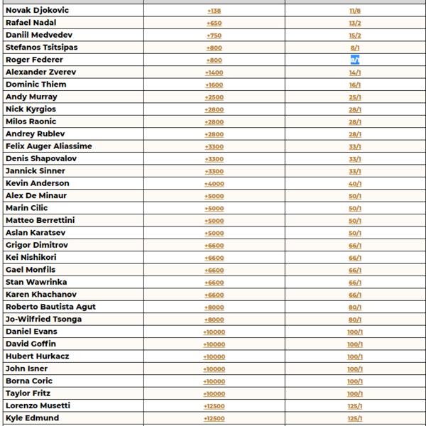 Zanimljivo je da je Rodžer Federer uglavnom četvrti ili peti favorit. Kvota na njega je oko 9...
