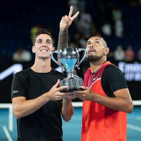 Australijski teniseri Nik Kirjos i Tanasi Kokinakis osvojili su trofej na Otvorenom prvenstvu Australije u konkurenciji dublova.