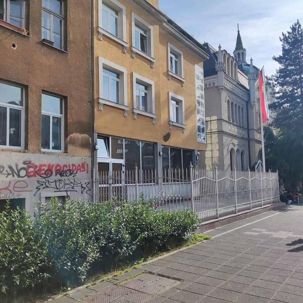 Ambasada Republike Srbije u Bosni i Hercegovini najstrože osuđuje današnji vandalski čin ispisivanja neprimerenog grafita na zgradi pored naše ambasade u Sarajevu.