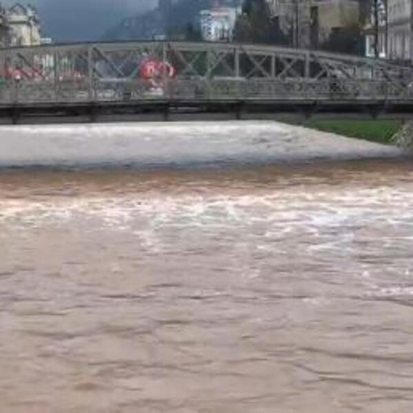 "Moguće plavljenje imovine i saobraćajnih mreža": Dramatično u Sarajevu, nabujala i zamućena Miljacka (FOTO)