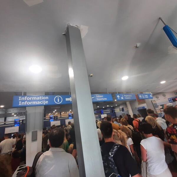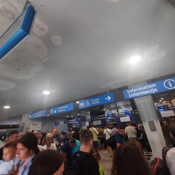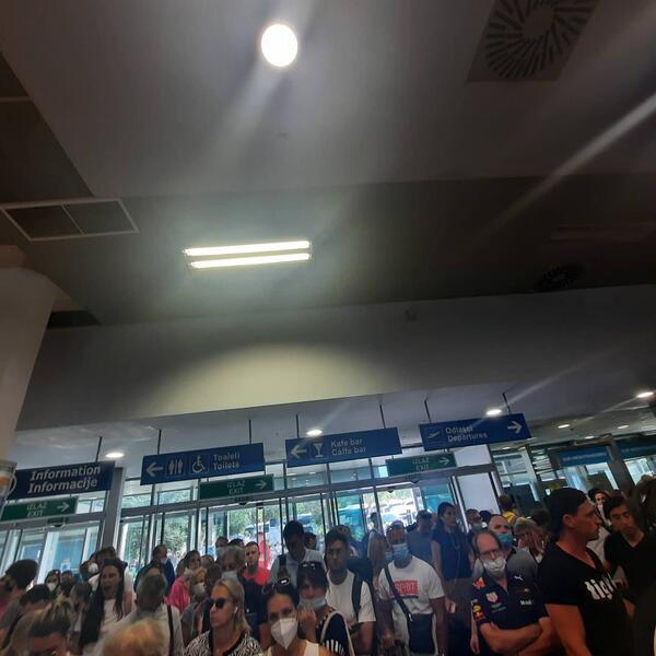 Na aerodromu u Tivtu trenutno je ogromna gužva, a putnici jop uvek nisu detaljno upućeni niti obavešteni zašto su njihovi letovi od ranog jutra pomereni.