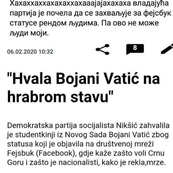 Studentkinja tehničkih nauka iz Novog Sada, nedavno je privukla pažnju medija u Crnoj Gori svojim fejsbuk statusom, toliko da je čak i vladajuća stranka u Crnoj Gori, DPS, izdala saopštenje kojim se zahvaljuje na, kako navode, tom hrabrom potezu.
