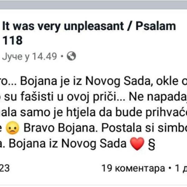 Ova studentkinja je napisala status kojim hvali multikulturalnost i vrednosti današnje Crne Gore i naravno, neizostavno – otpor „velikosrpskom nacionalizmu“ na čemu su joj izrazito bili zahvalni režimski mediji kao i „istaknute“ ličnosti crnogorske scene te je svojih nekoliko minuta dobila i u emisiji Živa istina, Darka Šukovića kome je gost bio analitičar Ljubo Filipović.