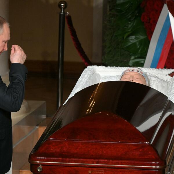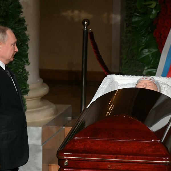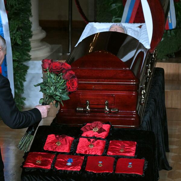 Putin je na oproštajnu ceremoniju stigao sa buketom crvenih ruža, koji je spustio pored sanduka.