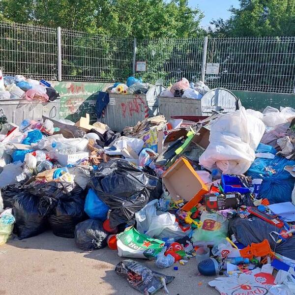 Visoke kante u obliku cilindra, poznate kao "kontejneri roboti", postavljene su u mnogim manjim opštinama u Grčkoj.