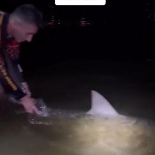 Ranije ove godine uhvaćena je Bik ajkula. U pozadini snimka se čuju šokirani posmatrači kako šapuću u pozadini dok ribar ulazi u vodu kako bi ajkulu odveo u dubinu.