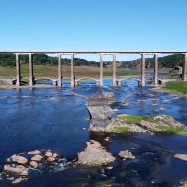 Snimci pokazuju ostatke zgrada i stubova starog mosta u blizini isušenih obala rezervoara. Meštani i turisti iskoristili su priliku da lutaju kroz ruševine.Akumulacija, jedna od najvećih u Galiciji, sada ima oko 40 odsto kapaciteta, nakon tekuće suše. Stručnjaci veruju da Španija doživljava najsuvlju klimu u poslednjih 1.000 godina.