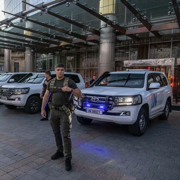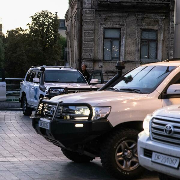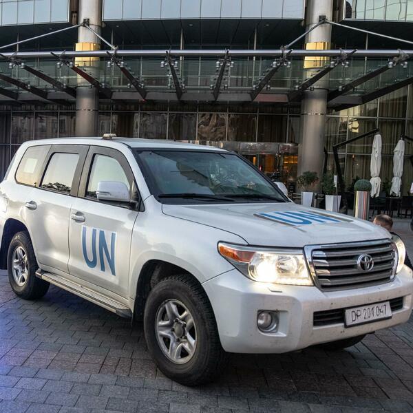 U konvoju se nalazi devet vozila sa natpisom UN i nekoliko vozila za pratnju.