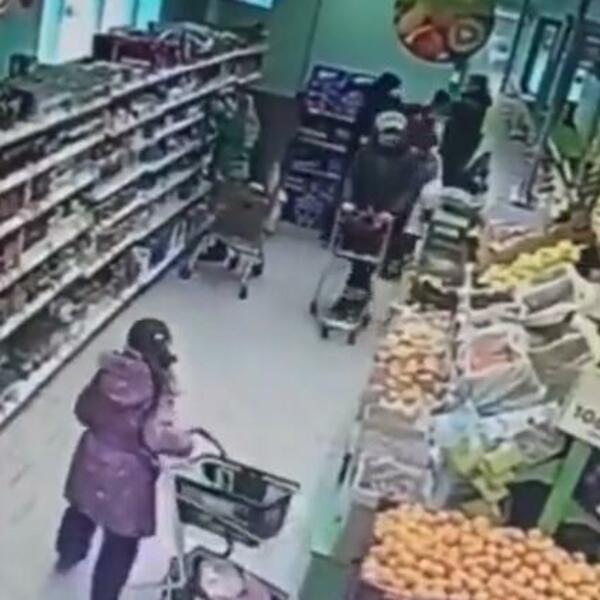 Na snimku se vide majka i ćerka kako stavljaju proizvode u kolica. Pojavljuje se žena u crvenoj jakni koja dolazi do deteta, naginje se iznad devojčicine glave i PLJUJE je po kosi! Majka devojčice je to videla i momentalno je reagovala. Potrčala je za ženom u crvenoj jakni, uhvatila je za ruku i dovukla nazad do svoje preplašene ćerke da joj se, pretpostavlja se, izvini i obriše pljuvačku sa kose.