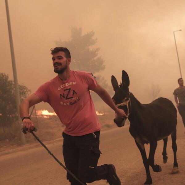Rodis je, rizikujući sopstveni život, uspeo da spase psa, konja i magarca iz požara koji je izbio u podnožju planine Parnite, u pokrajini Atika.