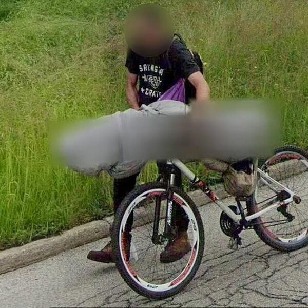 Zapanjujuće slike koje je snimila Google kamera u Ohaju, prikazuju čoveka koji gura bicikl uz ivicu puta sa prebačenom sivom ceradom.
