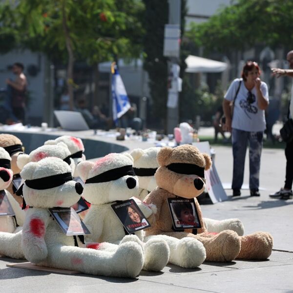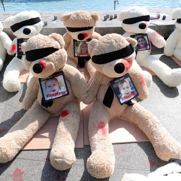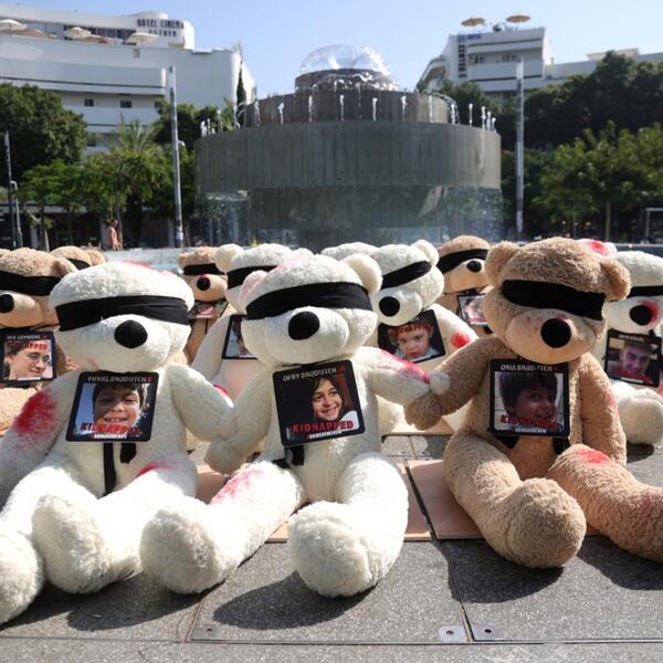 Na centralnom trgu u Tel Avivu danas su postavljene plišane igračke, tačnije plišani medvedići, a ovaj performans ima veoma bolnu simboliku.