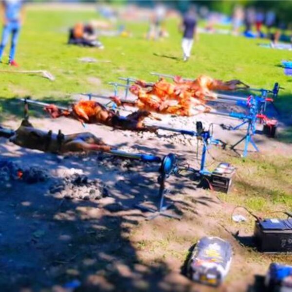 Na licu mesta, čuvari reda su zatekli, za njih, šokantnu scenu. Oko 150 ljudi okupilo se u zelenoj oazi, a pored njih je 12 jagnjića cvrčalo na vatri.