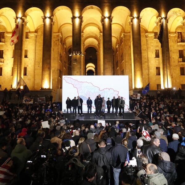 Protest opozicije započeo je u četvrtak, pošto je premijer Gruzije Irakli Kobahidze saopštio odluku o obustavi razmatranja pitanja početka pregovora o članstvu zemlje u EU do 2028. godine. Parlamentarni izbori u Gruziji održani su 26. oktobra.