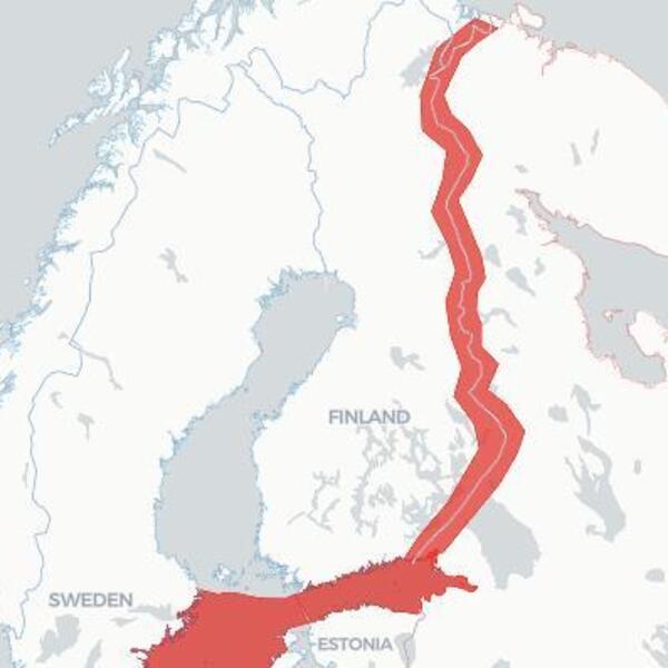 Na Njuzvikovoj mapi vidi se da bi potencijalni front mogao da bude na severoističnom krilu NATO, koje obuhvata oko 1.336 kilometara dugu granicu koju Švedskoj susedna Finska deli sa Rusijom.