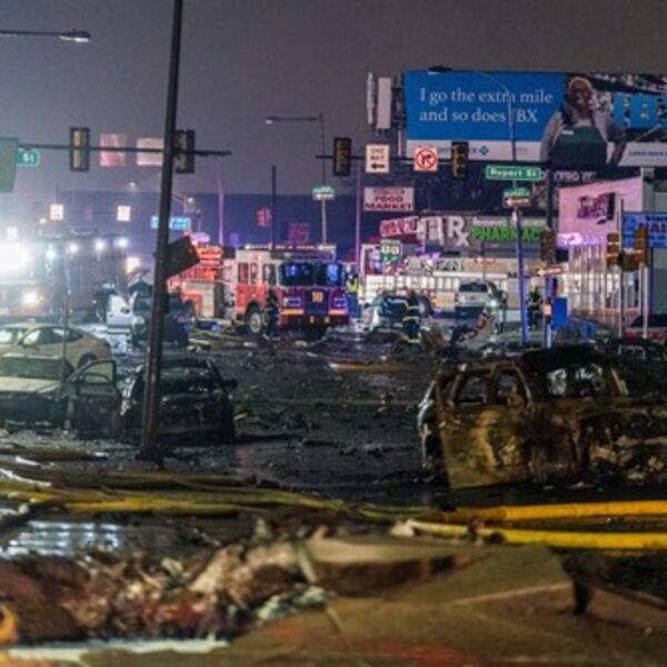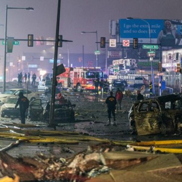 Mesto pada letelice, blizu raskrsnice dva prometna bulevara bilo je u plamenu, a gorele su i zgrade i vozila.