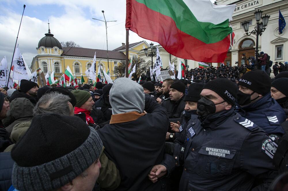 Držeći transparente sa natpisima "Želim normalan život" i "Kovid-19 je tiranija, a ne pandemija", demonstranti su izviždali premijera Kirila Petkova dok im se obraćao.
