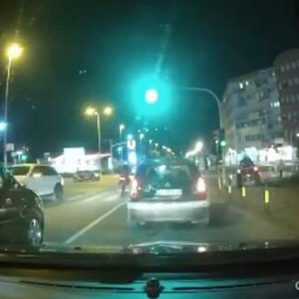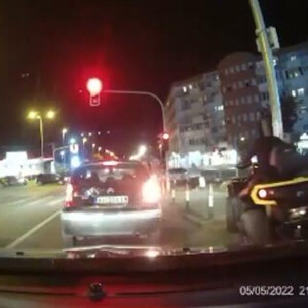 Tako se i večeras pojavio snimak bahatog vozača kvada koji je na raskrsnici u ulici Ratka Mitrovića, dok je bilo crveno svetlo, nonšalantno prešao na trotoar i nastavio svojim putem.