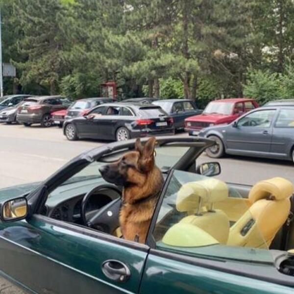 Kako neki nemarni vlasnici imaju običaj da ostave svoje ljubimce u zatvorenom vozilu bez vazduha, hrane i vode, nekad i na ogromnom suncu, ovaj pas je imao sreće, pa uživa u otvorenom nebu i još udobnijom sedištu automobila.