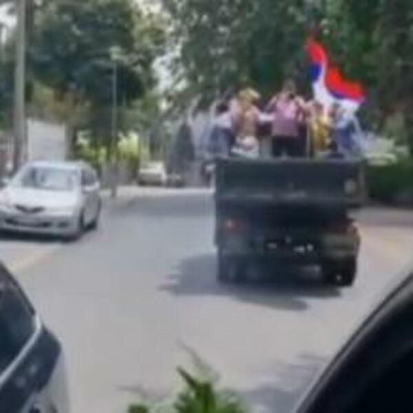 Naime, snimljen je kamion u čijoj su prikolici trubači, barjakrar i svatovi koji su, pretpostavljamo, krenuli po mladu.