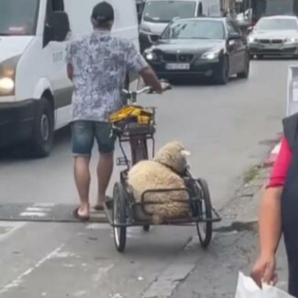 Naime, on je na svoj tricikl natovario jednu ovčicu i polako je voza ulicama. Neko od prolaznika ga je snimio u Prvomajskoj ulici, a snimak je objavljen na društvene mreže.