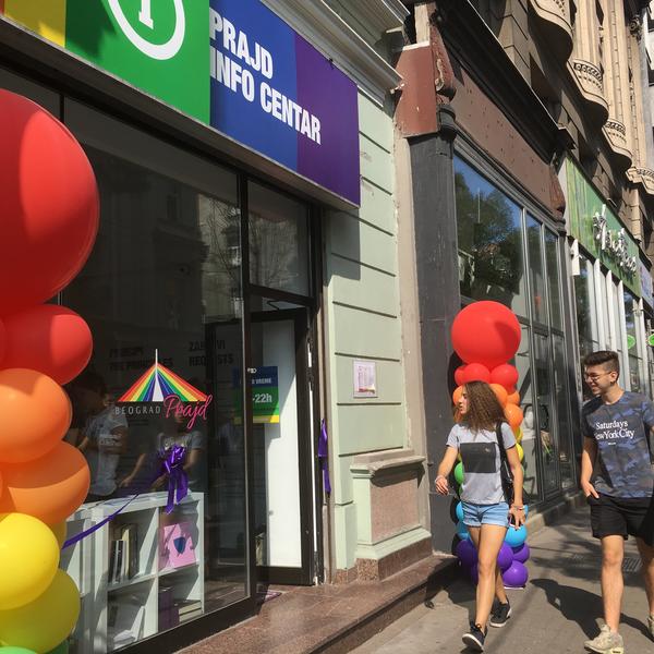 Prajd Info Centar se nalazi u Kralja Milana 20, u neposrednoj blizini zgrade Predsedništva, Skupštine grada kao i drugih Vladinih institucija koje imaju dvadesetčetvoročasovno policijsko obezbeđenje...