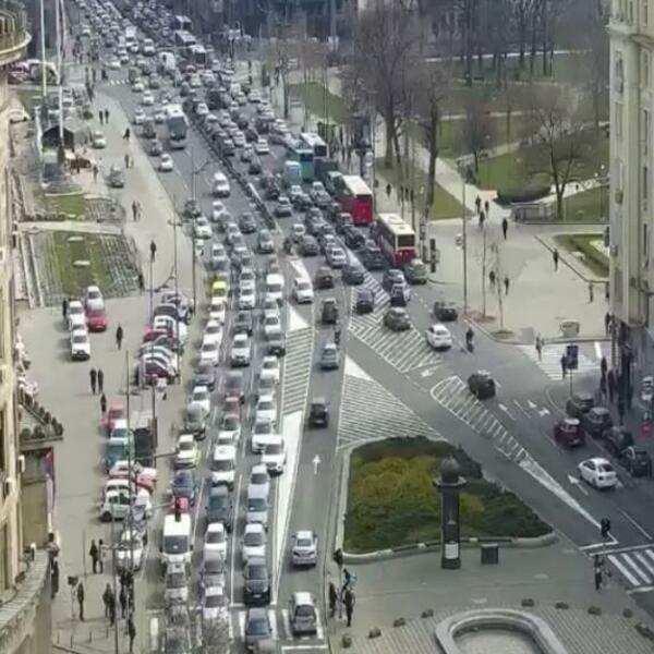 Ogromna gužva, odnosno automobili kao da se ne pomeraju, trenutno je stanje kakvo zatičemo u samom centru grada - na Trgu Nikole Pašića i u Takovskoj ulici u oba pravca. Zastoj je i na Savskom trgu, kao i u Bulevaru despota Stefana.