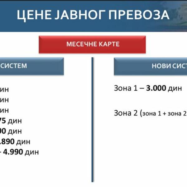 Takođe, u novom sistemu grad će biti podeljen u samo dve zone. Postojaće celodnevna karta za ceo grad i cena će biti 200 dinara. Ukidaju se i papirne karte za jednu vožnju.