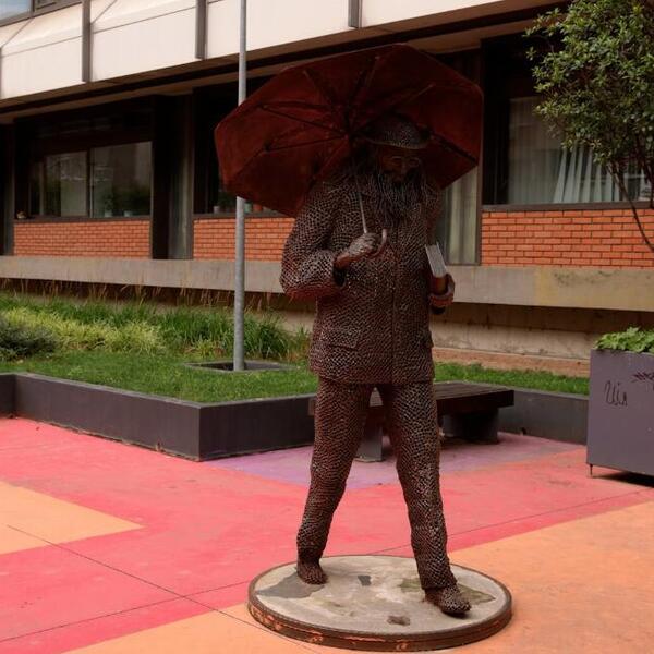 Delo je poznatog umetnika Borisa Deheljana, a sastavljeno je od šrafova, matica, armature i žica.