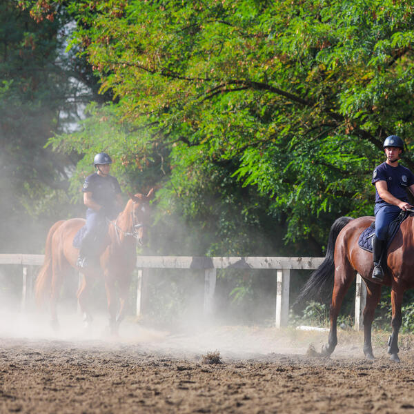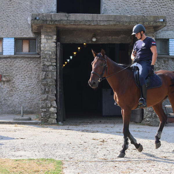 Obišli smo kompleks Čete konjanika i o treninzima, poslovima i ovlašćenjima porazgovarali smo sa komandirom voda konjanika, poručnikom policije Sinišom Padežaninom.