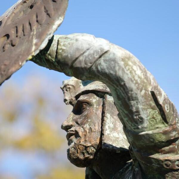 Simbolično, skulpture vojnika prikazane na spomeniku, nose samo štit u ruci i bez oružja, ne napadaju nikoga, već brane svoju zemlju