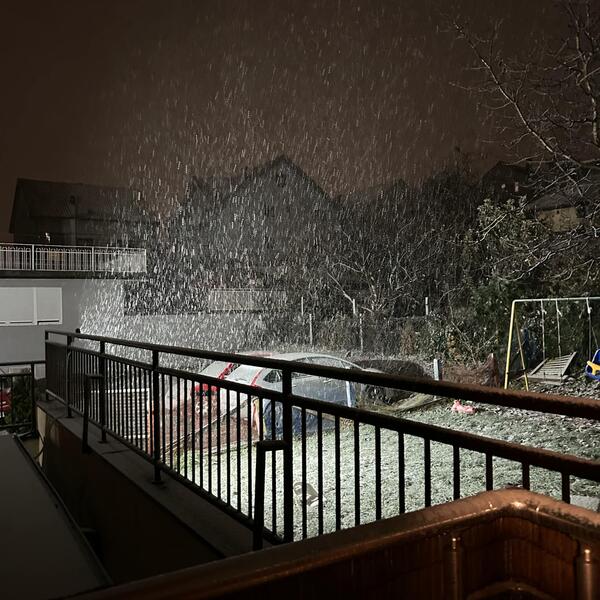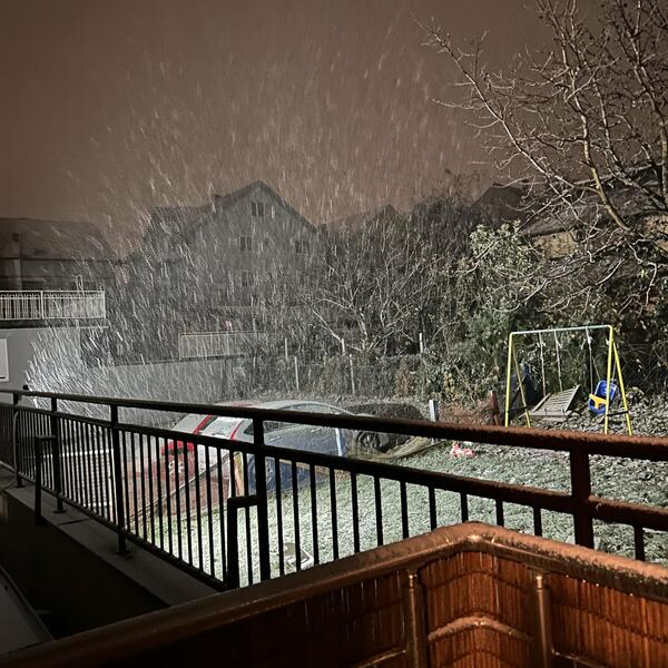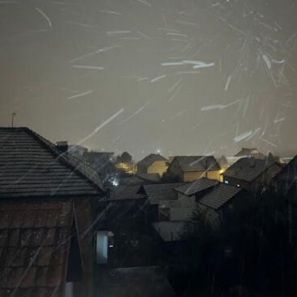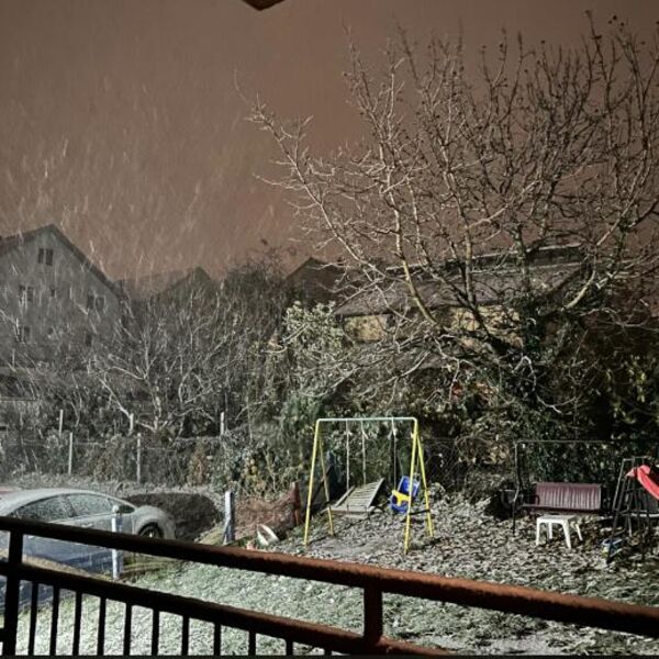 Sneg je počeo da pada oko 19 časova i ubrzo stvorio tanak sloj na trotoarima i automobilima.