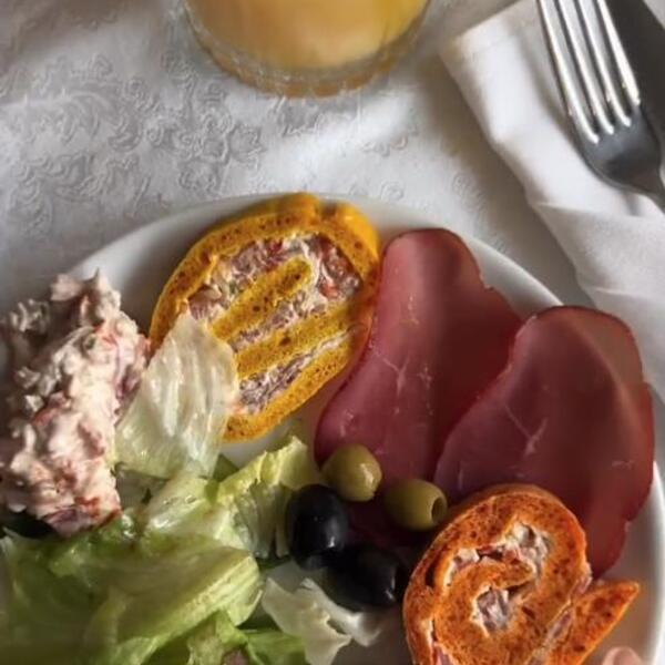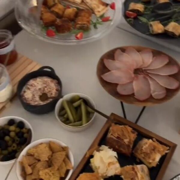 Na snimku se vidi zaista dobra ponuda hrane, pa se na stolovima pored više vrsta suvog mesa nalaze i različiti slani rolati, nekoliko vrsta sira i kačkavalja. Tu su nezaobilazne pite, velika ponuda salata, što sezonskih što ostalih, nekoliko jela od jaja, viršli, kobasica i sve sličnog što se može naći na mnogim trpezama u toku prepodnevnog obroka.