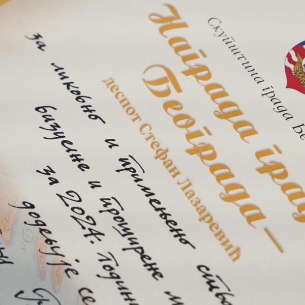 Gradonačelnik Aleksandar Šapić i predsednik Skupštine grada Nikola Nikodijević danas su na svečanosti u Starom dvoru uručili laureatima Nagradu grada Beograda – despot Stefan Lazarević, Nagradu grada Beograda za stvaralaštvo mladih i Nagradu „Svetislav Stojanović” za 2024. godinu. Šapić je dobitnicima nagrada poželeo dobrodošlicu u zdanje Starog dvora i rekao da je siguran da su komisije za dodelu nagrada uradile dobar posao. – Velika mi je čast i zadovoljstvo da obavljam funkciju gradonačelnika i da budem „prvi među jednakima” u gradu u kojem sam rođen, u kojem sam odrastao i koji volim najviše na svetu, kao i svaki drugi Beograđanin. Naš grad je tokom istorije puno stvari „pregurao i prelomio preko glave”. Mislim da svako od nas ima obavezu da ga čuva, voli, te da učini sve da bismo ga u što boljem stanju ostavili budućim pokolenjima. To nikada ne smemo da zaboravimo, bez obzira na raznorazne procese i situacije kroz koje je prolazio. Tokom istorije Beograd je prošao kroz mnoge teške periode, ali je uvek uspevao da „preživi” zahvaljujući, pre svega, ljudima koji su ovde živeli i koji su ga čuvali. To je obaveza svih nas koji danas u Beogradu živimo i radimo. Čuvajmo naš Beograd, jer drugi nemamo – poručio je Šapić i još jednom čestitao laureatima. U ime nagrađenih obratila se Suzana Rajić, koja je ovu prestižnu nagradu dobila za delo iz oblasti društvenih i humanističkih nauka za monografiju „Knez Milan Obrenović od beratlije do suverena”. Ona je Skupštini Grada Beograda zahvalila što prepoznaje, stimuliše i nagrađuje pregnuća stvaraoca iz oblasti nauke, kulture i umetnosti. – To je najbolji pokazatelj da Grad odlično zna i uviđa svoje mesto i ulogu u ovom izuzetno složenom zadatku. Podsticaj koji stvaraoci ovim putem dobijaju jeste i obaveza da nastave da utiru put, mukotrpan, ali jedini pravi put novih saznanja i dostignuća, onaj koji nudi bolju budućnost celokupnom našem narodu – kazala je Suzana Rajić. Nagrada grada Beograda dodeljuje se u okviru manifestacije „Dani Beograda” zaslužnim pojedincima koji su svojim radom i delima u prethodnoj godini izuzetno unapredili kulturni, naučni, privredni i sportski život u našem gradu. Dobitnici Nagrade grada Beograda – despot Stefan Lazarević su: za književnost i prevodno stvaralaštvo Borivoj Gerzić, za likovno i primenjeno stvaralaštvo, vizuelne i proširene medije Dragan Rajšić, za muzičko i muzičko-scensko stvaralaštvo Marko Kovač, za delo iz oblasti društvenih i humanističkih nauka Suzana Rajić, za delo iz oblasti prirodnih i tehničkih nauka dr Jelena Lević, za oblast nauka – pronalazaštvo prof. dr Aleksandra Ivetić, za arhitekturu i urbanizam arhitekta Aleksandra Šević. Za oblast poljoprivrede nagradu je dobilo porodično poljoprivredno gazdinstvo Marka Vilotića iz Grabovca, opština Obrenovac, za novinarstvo dr Milivoje Pavlović, za sport Miloš Ćuk, za dugogodišnji rad i trajni doprinos razvoju grada Beograda posthumno Igor Bojović, a za stvaralaštvo mladih Kosta Stojanović. Dobitnici Nagrade „Svetislav Stojanović” za 2024. godinu su: za pojedinca Miloš Maksimović, za vatrogasnu jedinicu Vatrogasno-spasilačka četa Novi Beograd.
