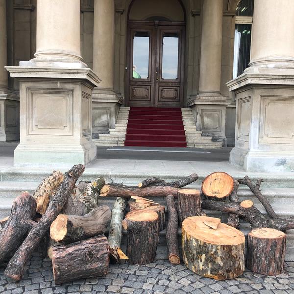 POSEČENA STABLA S KALEMEGDANA ODNELI PRED SKUPŠTINU GRADA: Iz ove opštine su im poslali jasnu poruku (FOTO)