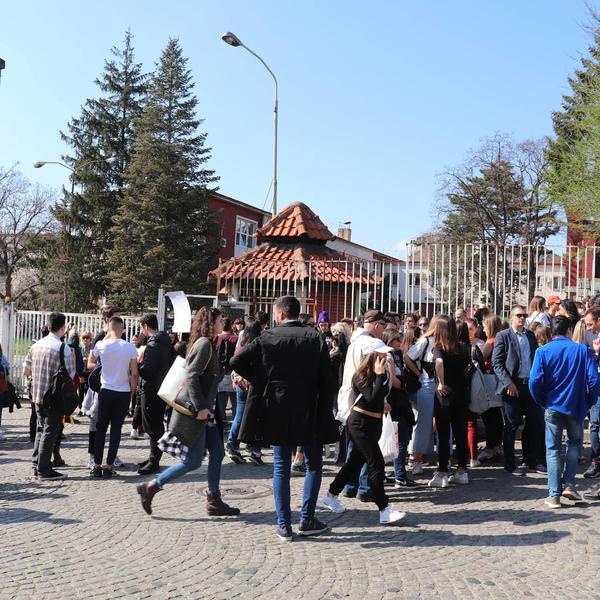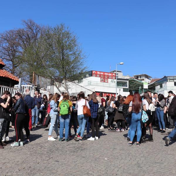13:45 Na protestu ispred Filološke gimnazije okupio se veliki broj učenika sa transparentima, a među prisutnima je i Balša Božović, bivši narodni poslanik.