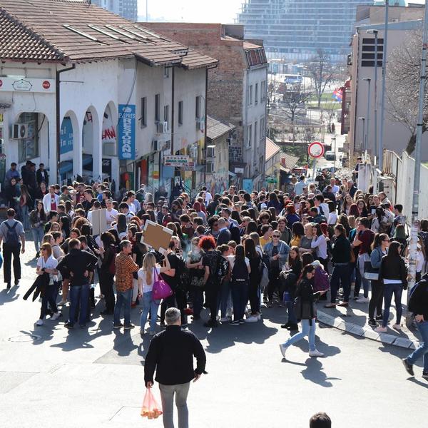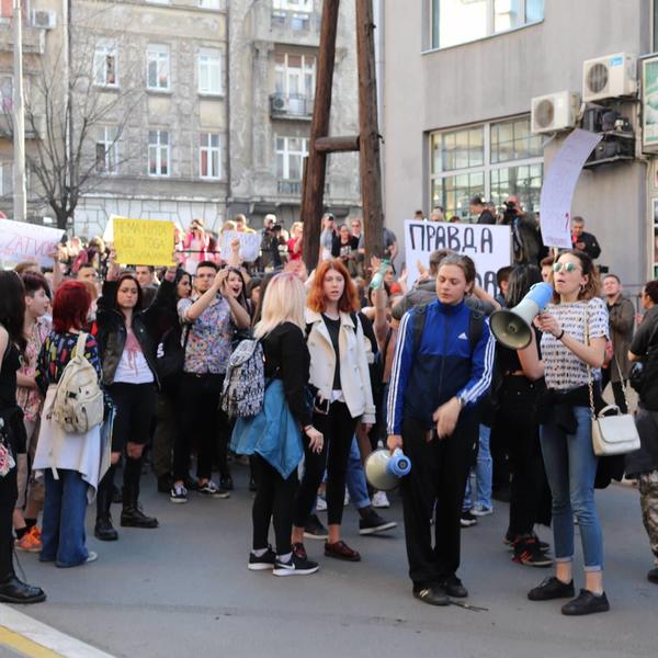 14:25 Povorka je krenula od Filološke gimnazije ka zgradi MUP-a u ulici Bulevar Despota Stefana. Saobraćaj na tom potezu je obustavljen.