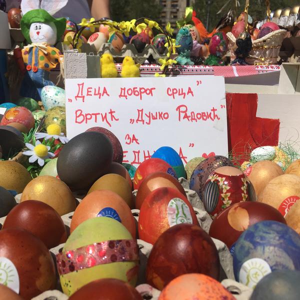 Na trgu Nikole Pašića već sedam godina zaredom uoči Uskrsa, građane Beograda dočekuju nasmejana lica osoba sa invaliditetom koji prodaju najlepša uskršnja jaja koja su na veoma kreativan način išarana.