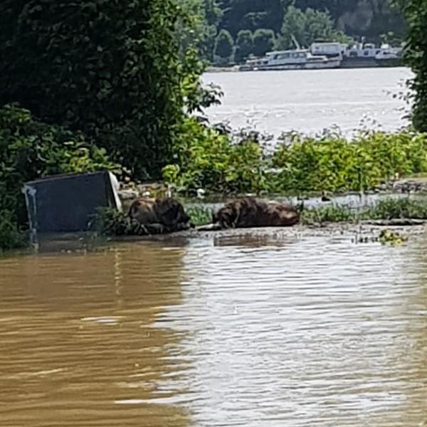 Naime, iznad Pupinovog mosta uzvodno, sa desne strane, na mestu na kom može samo čamcem da se priđe nalaze se psi vezani lancima, do pola u vodi! Ovim nesrećnim životinjicama preti davljenje.