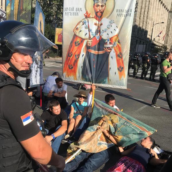 Osim raznih transparenata, u kolonoi prajda bila je i ikona Bogorodice.