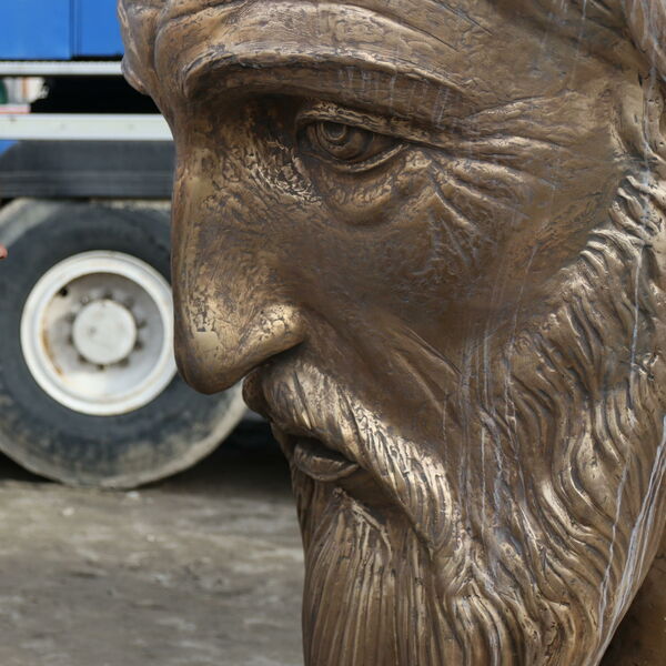Prolazeći pored masivnih delova, naišli smo na glavu srpskog vladara i eto nas oči u oči sa njim!