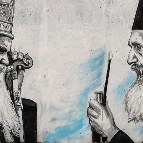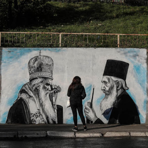 Mural sa likovima nedavno upokojenog mitropolita Amfilohija i patrijarha Pavla krasi zid u Ulici Mirijevski venac u Beogradu.