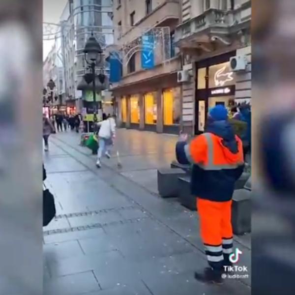 SKANDAL U CENTRU BEOGRADA! Mladić se podsmeva i maltretira radnika "Gradske čistoće" (VIDEO)