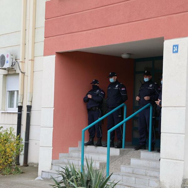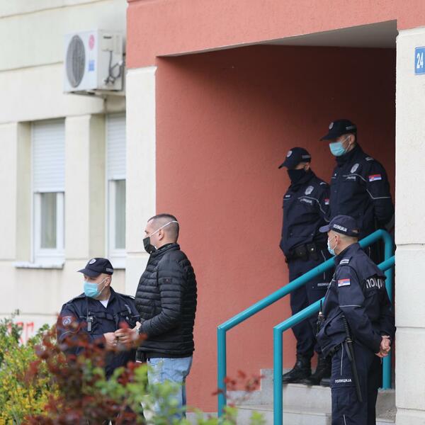 12:59h - Ispred zgrade nalaze se dva automobila policije. Na vratima zgrade u kojoj se nalazi stan Lalovića stoji više pripadnika policije. Na 200 metara od zgrade nalazi se i vozilo marice.