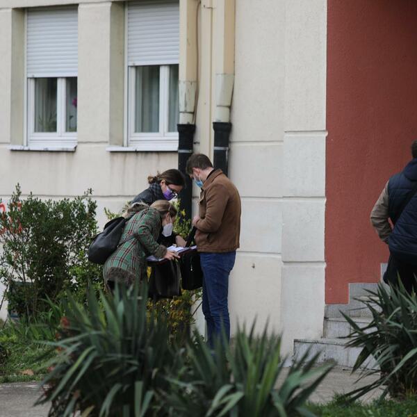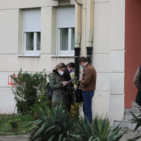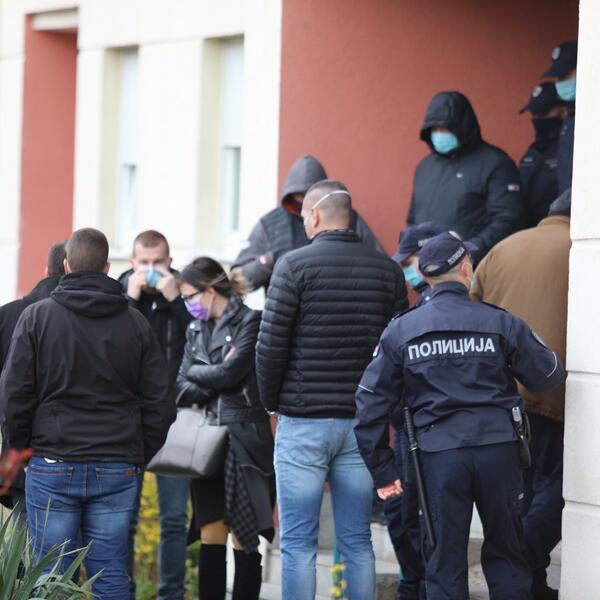 13:35h - Građani i komšije Lalovića se okupljaju ispred zgrade kako bi pružili podršku, ali i ispratili celu situaciju.