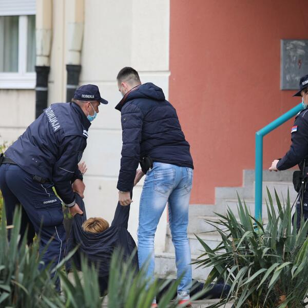 15:19h - Policija je "skinula" pukovnika sa omče, žena mu je odvedena ispred zgrade, a mnogi aktivisti "Krova" su privedeni.