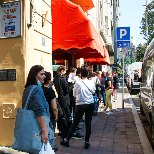 Pri čekanju ispred knjižare u Takovskoj poštovale su se antiepidemiološke mere. Iako je red bio znatno manji od onog u Kosovskoj, ljudi su pravili socijalnu distancu i vodili računa.