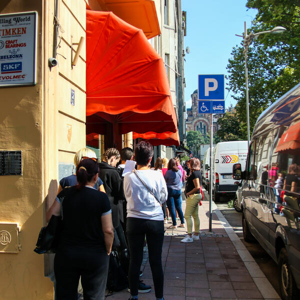 Ispred knjižare u Kosovskoj ulici ne možete da ne uočite ogroman red.