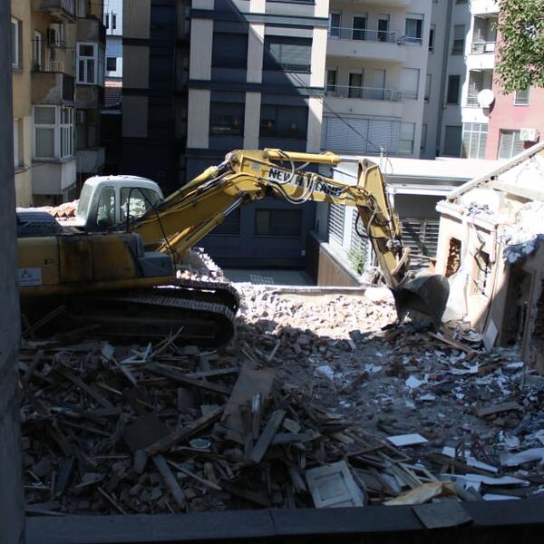 - Kašika od bagera jutros je bila ženi tačno iznad glave! Već tri dana unazad oni ruše bagerom, a mi zbog buke moramo izvesti decu napolje. Dešavalo se i da u dva časa ujutru doteraju bager. Tada su nam rekli da imaju odobrenje da ruše i u dva ujutru. Tu celu noć nismo spavali, ni mi, ni deca, ni drugi stanari. To je bio ogroman stres kada su udarili kašikom bagera. Izašao je ceo komšiluk! Investitor nam se tada izvinio, ali su nastavili po starom. Čupali su i kablove u zgradi. Kada smo pokušali pre nekoliko dana da razgovaramo sa radnicima psovali su nam srpsku majku, jer su oni Albanci, rekao je za Espreso jedan od stanara.